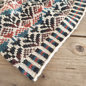 Blyn is a charted pattern for a stranded colorwork hat. The main color (background color) stays the same throughout and the contrasting colors change.