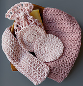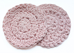 These pretty face scrubbies are made using the two double crochet cluster stitch. This lovely stitch creates the best of both worlds with a lightly textured combined facial scrubby/make-up round. Soft and smooth on one side, great for make-up removal. Bumpy and textured on the other, perfect for gentle exfoliation.
