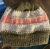 I designed this hat for my 3rd design in coordination with Warm the Line. This hat is knit in the round from the bottom up. The stripes are knit with a fun texture between each color. I designed this hat to use up those extra little bits of worsted weight yarn you might have in your stash. It is a great way to help Warm the Line this voting season.