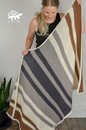The Farmhouse Blanket is an easy crochet blanket pattern! It uses a one row repeat, and features the even moss stitch, fun stripes, and a crab stitch border! The pattern instructions are for a lapghan size (36" x 48") blanket but also includes 5 other size options and instructions on how to customize the size!
