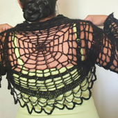 The Cobweb - shrug is the perfect halloween pattern! The pattern is worked in a square and corners are attached with chs and sl st. The sleeves are done directly on the body and in the round.