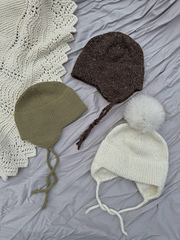 The hat can be decorated with pom-poms or teddy bear ears- the pattern therefore also contains instructions for knitting cute little teddy bear ears, but note that you will need more yarn than written. If desired, you can knit the hat without flaps, but then I would recommend knitting the hat a bit longer than is written in the pattern.