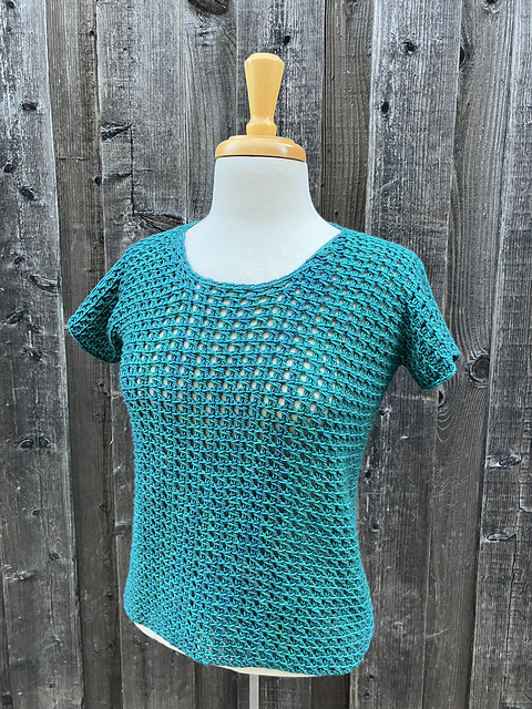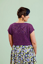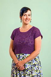 A perfect layering piece in either the cropped or full-length option, this fun and easy top is crocheted side to side which makes it easy to customize the fit. A simple Hybrid Crochet (also known as Tunisian Crochet) lace stitch is worked with a long hook, each row containing a forward pass and a return pass. It’s a good choice for a first garment using this technique, with selvedges worked throughout for minimal finishing.