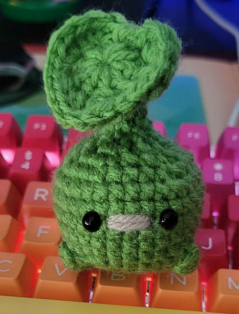 This pattern was originally intended to be keychain sized, but please use a bigger hook and/or different yarn if you prefer different sizes. I used what yarn I had in the house already but you may prefer to use a smaller size yarn so it's easier to use.
