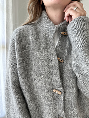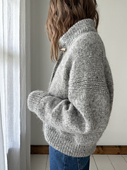 The Port Jacket is worked from the top down. It features thoughtful design elements such as the shaped collar, tidy buttonholes, and ribbing along the armholes. These details create a touch of modern elegance, making this jacket a versatile addition to any wardrobe. The boxy silhouette ensures a comfortable fit, perfect for layering over other garments during cooler months.