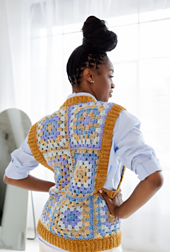 Let your old soul glow in the oversized Grandpa Sweater Vest. This chunky granny square v-neck is the cozy rebellion your wardrobe needs. Beginner and experienced crocheters will appreciate the simplicity of multi-colored granny squares edged with crisp ribbing.