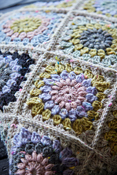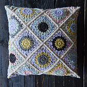 Classic granny square sunburst motif. Quick and fun project using Tweedy yarn that has a timeless appeal. The colours are soft and pretty and this cushion will complement your home decor beautifully.