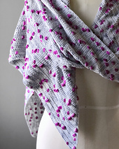 This shawl is an asymmetric triangle, beginning at one point and worked on the bias, with increases along the top edge only.