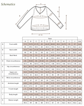 It has finished chest circumference of 35 (39.25, 43, 47.25) (51, 55.25, 59) (63.25, 67, 71.25)” / 87.5 (98, 107.5, 118) (127.5, 138, 147.5) (158, 167.5, 178) cm.