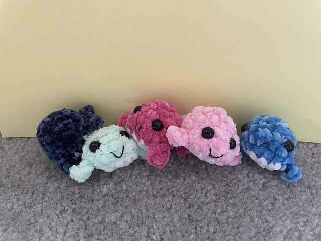 This is a free pattern for a 1 inch mini whale. it only took me about 10 minutes to make because it is only 7 rounds, and no sew!
