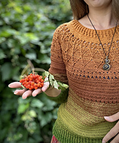 The sweater Charlotte is worked from top to bottom in rounds with turning the piece.