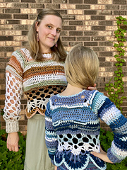 You have control over the texture, top coverage and shaping, sleeve length (or no sleeves), and the open lace coverage. There are 3+ sleeve options (and ++ with your creativity!). The pattern is very easy to follow, but your imagination will have plenty of room to roam. This wearable art is excellent for making multiples because each comes out so unique!