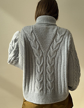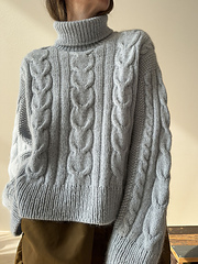 The sweater is worked from top to bottom. First the back and front pieces are worked back and forth. Then the two pieces are joined for the body, which is worked in the round. Sleeve stitches are picked up around the armhole and the sleeves are worked in the round. To ensure a good fit, short rows are worked at the top of the back piece, shoulders and sleeves. Ribbing, seed stitch and cables are worked on the body and sleeves, and all hems are finished with ribbing.