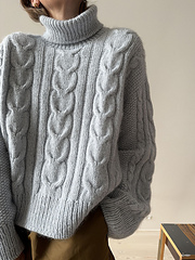 **TULIP_LOOP_ROLLNECK** has an oversize fit and roll neck, detailed with ribbing, seed stitch and cables.