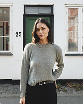 You start by working the two bottom edges of the body back and forth, before joining work on one needle and continuing in the round up to the underarms. Here, work is divided and front and back are finished separately working back and forth. Stitches are picked up for the sleeves which are then worked in the round from the top down. Ribbed edges that mirror the bottom hem finish both the neckline and sleeves.