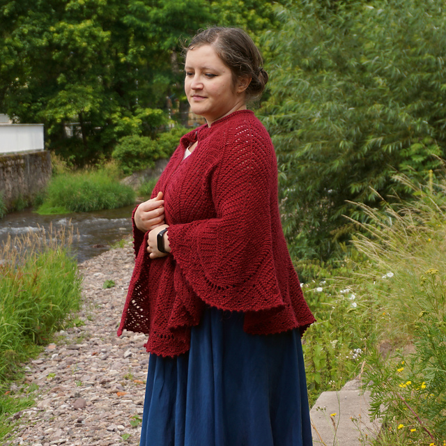 The capelet is made up of a variable number of identical wedges that you can repeat more or fewer times for more or less coverage.