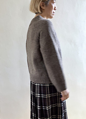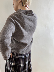 Start with provisional cast on, shape the yoke first with short rows and stitch increase to join at the front. Continue until the sleeve/body separation, then knit round the each parts. Finish the V-neck by picking up stitches from the front V-line and the stitches of provisional cast on. Choose 1x1 or 2x2 rib for the neckband, hem and cuffs.