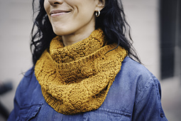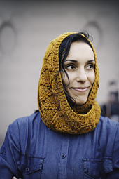 This design marks the second in my series inspired by Mabel Mora's distinctive fashion. Since I already published a Mabel's Sweater, I named this one Selena's Cowl ;)