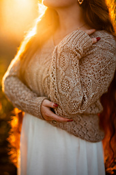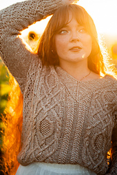 We recommend using a worsted-weight yarn with a cotton-wool blend for a garment that’s warm yet light enough for layering. This yarn ensures the cables and textured stitches pop while providing a soft, airy feel. Testers have also had success with 100% Merino wool!