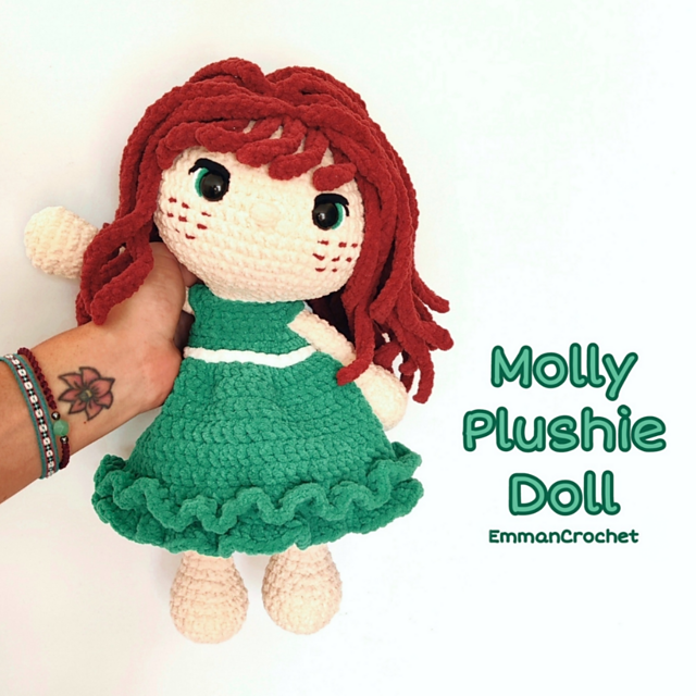 Enjoy making your own Molly Plushie doll with this crochet pattern including 21 pages with step by step instructions and pictures