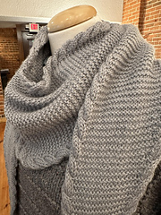 Jeri designed this pattern with a beautiful cable twist up each side. The same easy garter stitch in between. :)