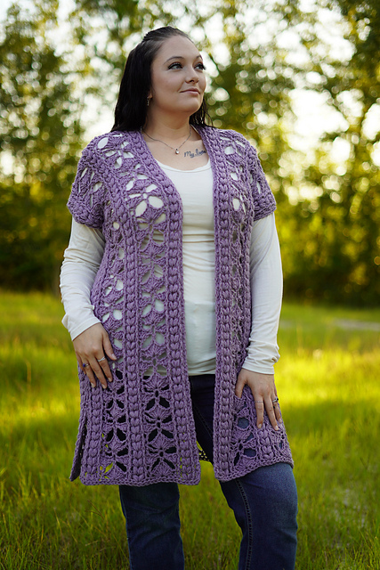 Pattern is Easy to read and Simple to make. Pattern is worked Bottom-Up to create your choice of Ruana or a cardigan. Pattern includes photo tutorials & a stitch tutorial to help you ease right through this Beauty! Pattern also comes along with extra instructions to customize this piece to fit your preference. This design is meant to be oversized but has a light & airy feel to it that is perfect transitional accent piece! This pattern is a mixture of simplic stitches, lots of lace, & of course texture to give you a fun yet stunning design. This design is perfect for a beach cover-up or as a light weight piece that goes perfectly with shorts & a tank top, making it that “MUST HAVE” piece!!