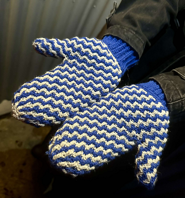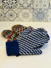 The SCRAPPY mitten pattern comes in 5 sizes: (XS) S (M) L (XL)