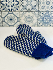 The mittens are crocheted in the round. At the end of each round, you connect with a slip stitch. Once the mosaic pattern starts, work one round in colour A (main colour) and then one round in colour B, alternating with each round. There’s no need to cut the yarn between rounds, just carry it up on the backside, but each round is worked with only one colour at a time. I recommend using contrasting colours.
