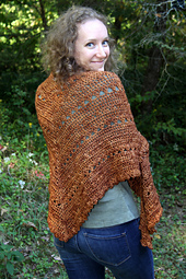 This super-cuddly shawl is worked top-down and is suitable for any weight yarn (suggested Sport or DK). It is easy to work, with a 10-row repeat containing Filet work, Popcorns, and Clusters, resulting in the scrumptious texture which Crochet excels at.