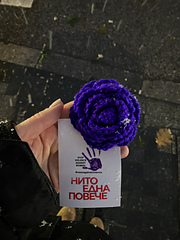 „Рози срещу насилието“ е активистки проект, създаден с цел повишаване на информираността относно домашното насилие и насилието основано на пола. Инициативата започва в Австрия през 2018 г. и бързо се разпространява по целия свят. Концепцията е лесна: изплетете лилава роза и я поставете на видно обществено място във вашия град. Това е форма на активизъм, известна като „yarnbombing“, която използва плетенето като начин да се привлече внимание към социално значим проблем.