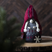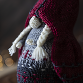 Don’t we all wish we could travel in style? This dramatic gnome has both a dressy cloak and body. Gnana features a few slipped stitch methods of mimicking embroidery for her fancy, festive holiday clothes. You never use more than one colour per round while you explore the power of slipping stitches with the yarn to the front and the back.