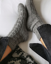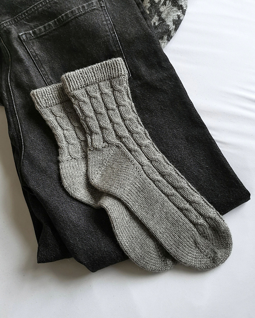 Die ZOLA Socken sind gemütliche Socken im schlichten Zopfmuster. Mit klassischem 6-fädigen Sockengarn und 3,0 mm Nadeln sind sie relativ schnell gestrickt und das perfekte kleine Projekt für zwischendurch.