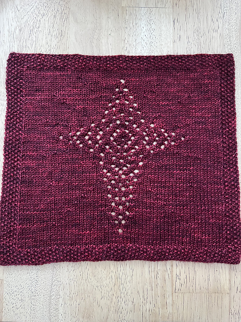 Knitters may prefer to work a smaller square in 4ply/fingering weight yarn which would be perfect as a Christmas dishcloth if worked in a cotton yarn. The pattern is worked the same, regardless of yarn weight.