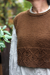The pattern includes notes for either stockinette or texture on your vest, as well as instructions for working it in one or two colors. It also has modifications for body circumference or length, as well as altering shoulder width, neckline, or armholes to suit your own tastes. The lace instructions are both charted and written.