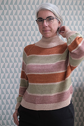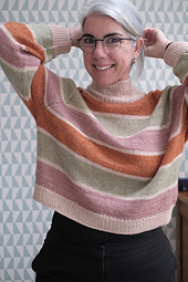 **Contrasting colour (CC):** for neck, cuffs, ribbing and thin stripes. I used the Monday colourway (creamy pink).