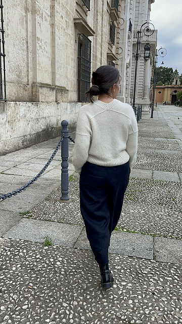 Para el modelo de la fotografía hemos usado MY KNITTED CLOSET [The Finest Suri][1] (53% Baby Suri Alpaca, 27% Seda reciclada, 20% algodón), color 010 Jasmine White
