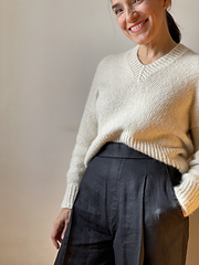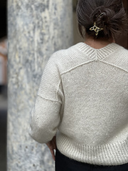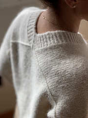 The sample shown used MY KNITTED CLOSET The Finest Suri (53% Baby Suri Alpaca, 27% Recycled Silk, 20% Cotton), colour 010 Jasmine White