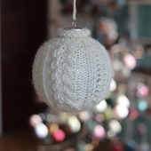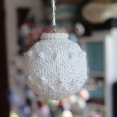 For a few rounds, you will be creating your stitches with the plastic bauble nestled inside the knitted fabric. **For your safety, please do not use a glass ornament to create this project!**