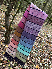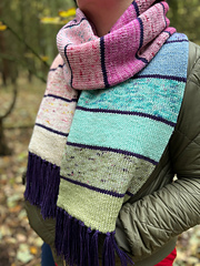 The scarf is knitted in the round, with your yarn held double. It is designed to use a yarn advent calendar, plus a contrast yarn. You could of course use leftovers from your stash if you prefer.
