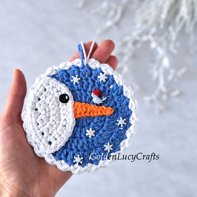 Free version of this pattern is available on my website: https://www.goldenlucycrafts.com/snowman-with-bird-crochet-pattern/