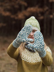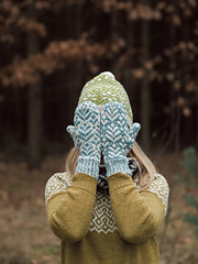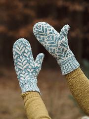 These cozy mittens feature a beautiful stranded colorwork design inspired by fern leaves, which adorn both the front and the palm of the hand. They are knitted in the round with a a motif continued all around. You can create a matching pair or switch up the colors for an inverted look - just like I did!