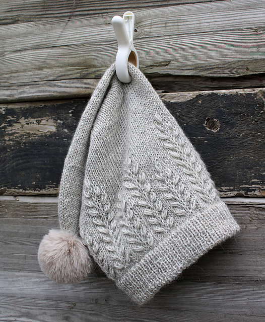 The inspiration for this Christmas stocking hat is a fern species named Maidenhair Spleenwort, which is called “Raunioiset” in Finnish. The pattern is part of the “In The Woods Knit Collection”
