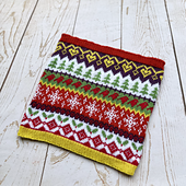 A Very Merry Cowl has two options; a two colour version or a multi (six) colour version. The pattern includes full colour charts for both options.