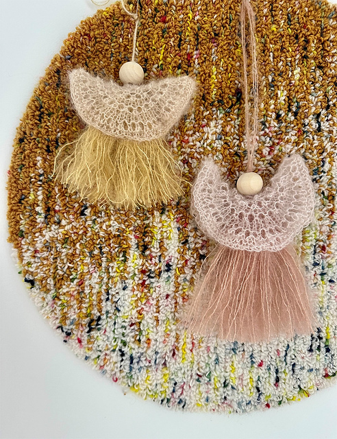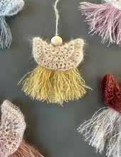 Experiment with various colors and textures and use even your smallest scraps to create these fluffy angel ornaments. The pattern includes instructions for knitting the wings flat or in the round. Choose the method you prefer.