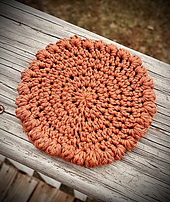 This pattern is designed using DK weight yarn and a 4.5mm hook. I recommend choosing a synthetic or plant-based fiber for the coaster, as these materials are easy to care for. The coaster is worked in the round using extended single crochet stitches, with increases in every round. The last round features a decorative bobble round.