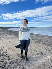 "Gjöf," meaning "gift" or "present" in Icelandic, is a pattern created by Védís Jónsdóttir for Nordic Craft Week. It features Léttlopi yarn and comes in both white and black versions.