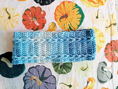 This Ear Warmer is made flat and worked until 19 inches of length before being seamed up at the back. It is adjustable if this doesn't fit you. The pattern uses UK terms and chain, double, and treble crochet stitches.