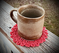 This pattern is made in DK weight yarn with a 4.5mm hook. I think a synthetic or plant fiber is best for a coaster, as you will want it to be easy care. This coaster is worked in the round in double crochet stitch. You work increases every rnd to get it to the proper size and the last round adds a festive edging that is fun to make. Gauge is not crucial in such a small piece.