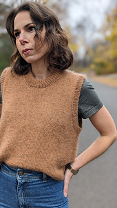 This vest is knit seamlessly from the top down. Stitches are cast on and the back is knit flat with some short row shaping for a better fit through the shoulders. Stitches are then picked up for one shoulder at a time and the fronts are knit flat with shaping for the neck. After the front is complete the front and back are joined and the body is knit in the round to the hem.