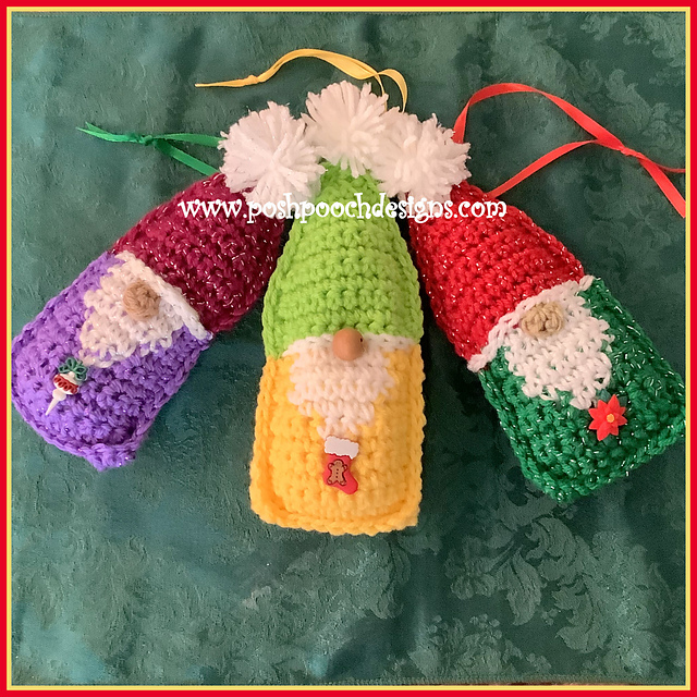***FREE CROCHET PATTERN LINK:*** https://poshpoochdesignsdogclothes.blogspot.com/2024/11/gnome-christmas-ornaments-crochet.html